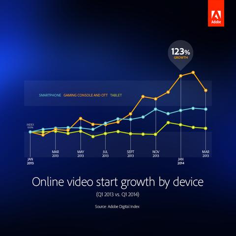 Gaffney說(shuō)雖然大部分的增長(cháng)都來(lái)自于游戲機,但這個(gè)類(lèi)別里還包括像Apple TV、Roku和Chromecast這樣的設備。Adobe表示,這個(gè)數字太小以至于不能單獨成一類(lèi)別,我好奇的是如果他們持續增長(cháng),那么又將有多少數字是由附加設備貢獻的呢?